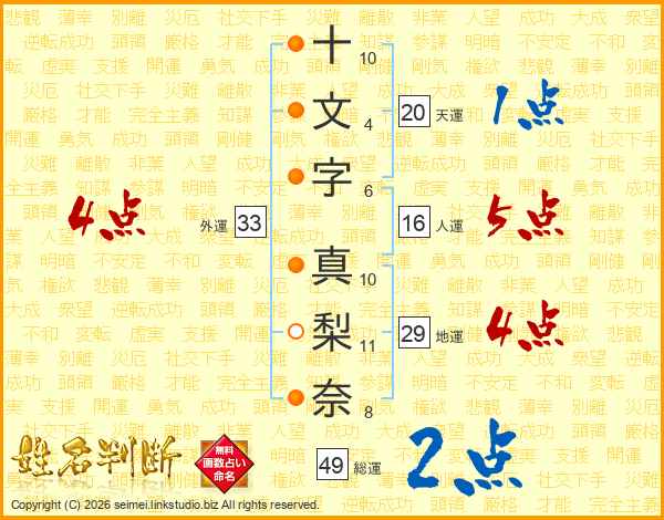 十文字真梨奈さんの総運は49画の2点!