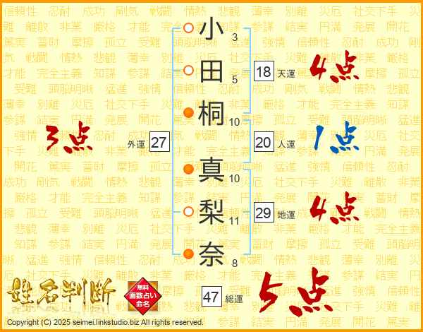 小田桐真梨奈さんの総運は47画の5点!