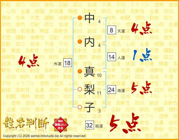 中内真梨子さんの総運は32画の5点!