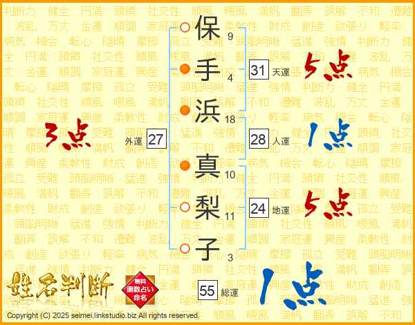 保手浜真梨子さんの天運は31画の5点!