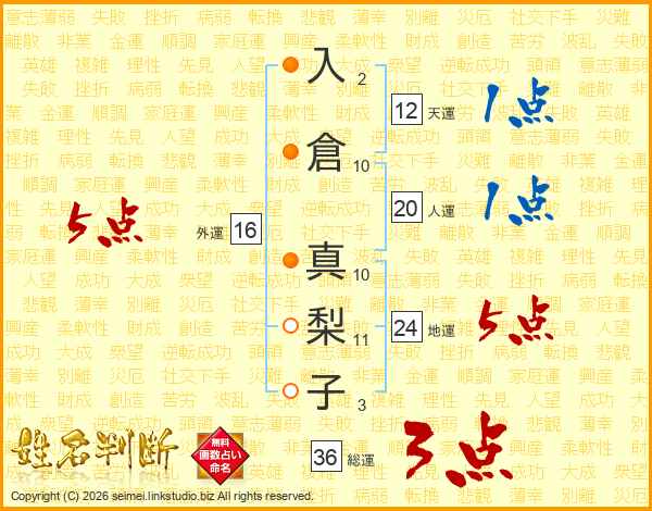 入倉真梨子さんの外運は16画の5点!