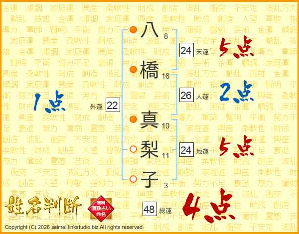 八橋真梨子さんの総運は48画の4点!