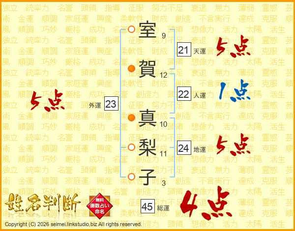 室賀真梨子さんの総運は45画の4点!