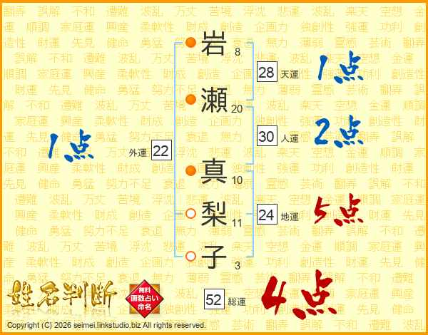 岩瀬真梨子さんの総運は52画の4点!