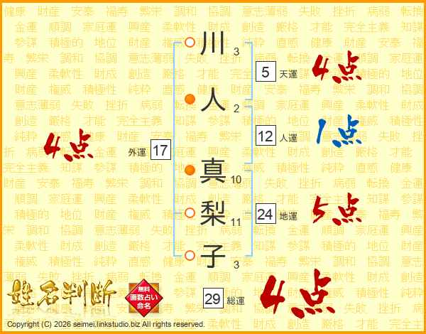 川人真梨子さんの総運は29画の4点!