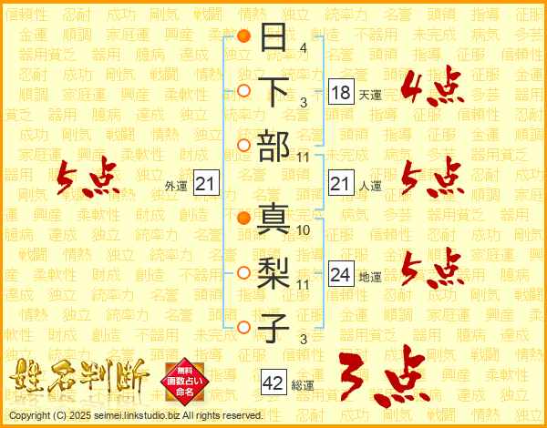 日下部真梨子さんの人運は21画の5点!