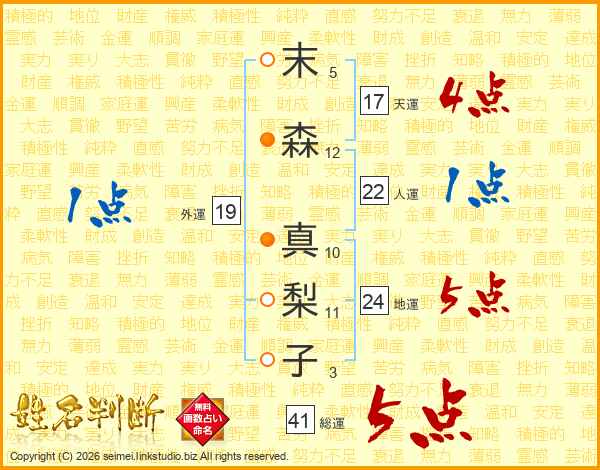末森真梨子さんの総運は41画の5点!
