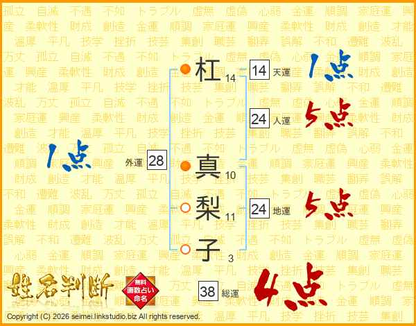 杠真梨子さんの総運は38画の4点!