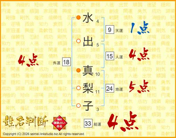 水出真梨子さんの総運は33画の4点!