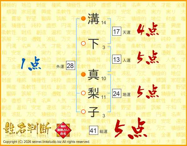 溝(14画)下(3画) 真(10画)梨(11画)子(3画)