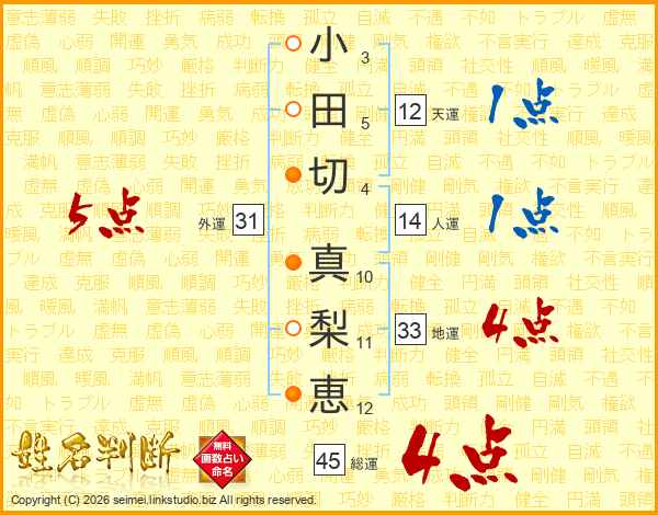 小田切真梨恵さんの総運は45画の4点!