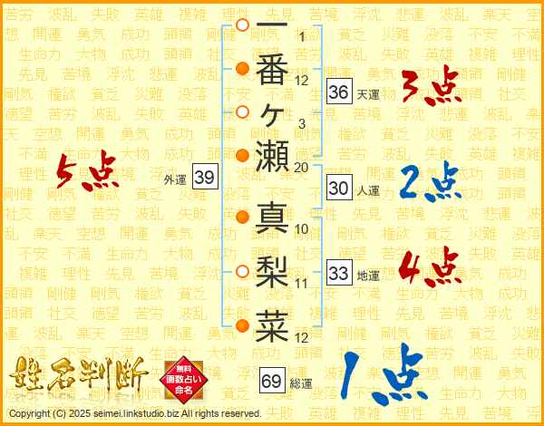 一番ヶ瀬真梨菜さんの外運は39画の5点!