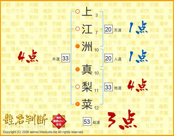 上江洲真梨菜さんの外運は33画の4点!