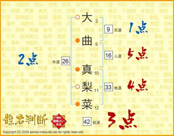 大曲真梨菜さんの地運は33画の4点!
