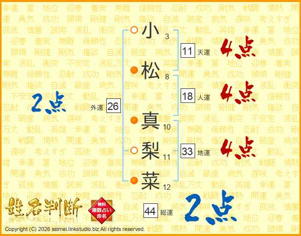 小松真梨菜さんの総運は44画の2点!