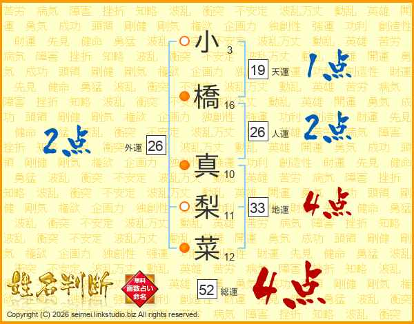 小橋真梨菜さんの総運は52画の4点!