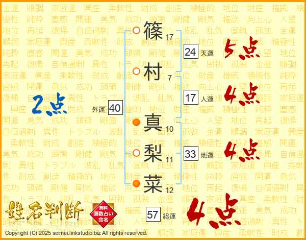 篠村真梨菜さんの天運は24画の5点!