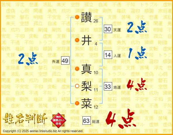 讃井真梨菜さんの総運は63画の4点!