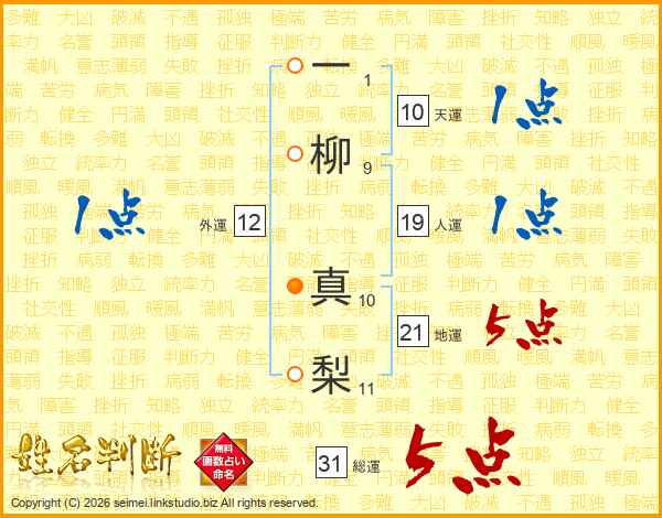 一柳真梨さんの総運は31画の5点!