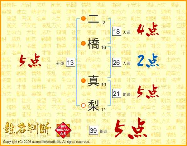 二橋真梨さんの総運は39画の5点!