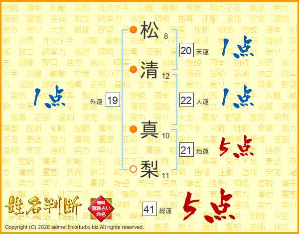 松清真梨さんの総運は41画の5点!