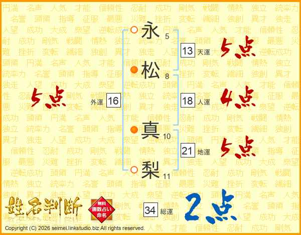 永(5画)松(8画) 真(10画)梨(11画)