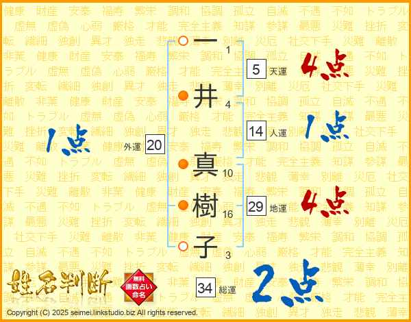 一(1画)井(4画)  真(10画)樹(16画)子(3画)