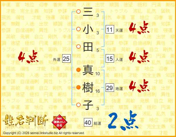 三小田真樹子さんの地運は29画の4点!