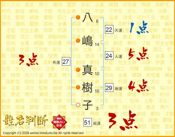 八嶋真樹子さんの総運は51画の3点!