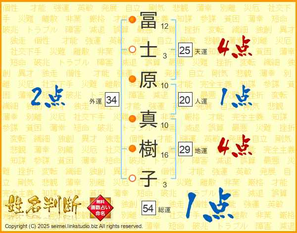 冨(12画)士(3画)原(10画) 真(10画)樹(16画)子(3画)