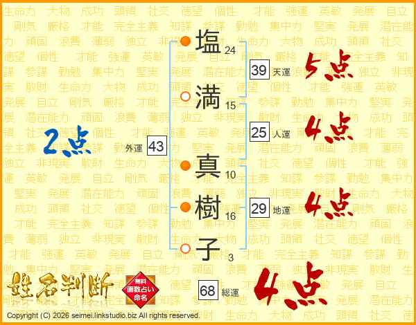塩満真樹子さんの総運は68画の4点!