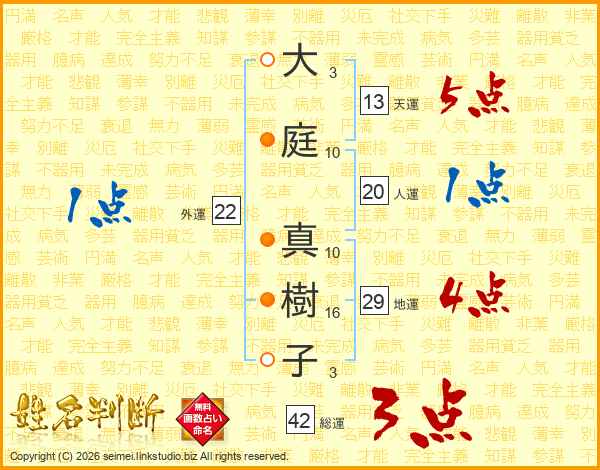 大庭真樹子さんの総運は42画の3点!