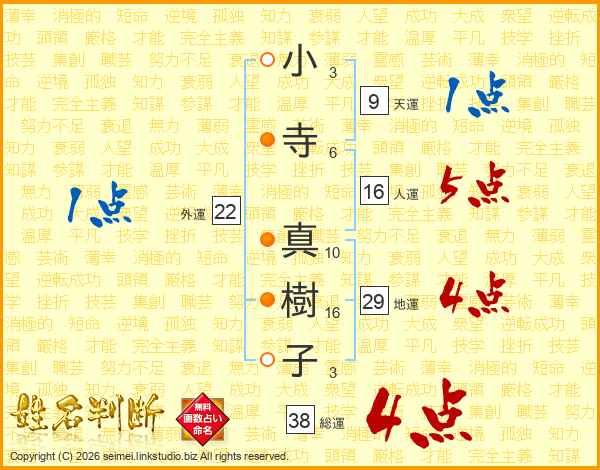 小(3画)寺(6画) 真(10画)樹(16画)子(3画)