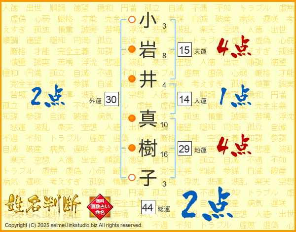 小(3画)岩(8画)井(4画) 真(10画)樹(16画)子(3画)