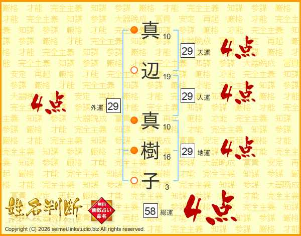 真辺真樹子さんの総運は58画の4点!
