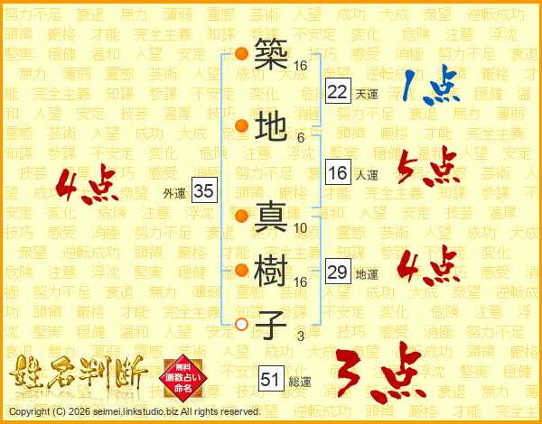 築地真樹子さんの総運は51画の3点!