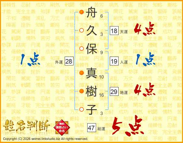 舟久保真樹子さんの総運は47画の5点!