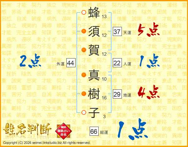 蜂須賀真樹子さんの総運は66画の1点!