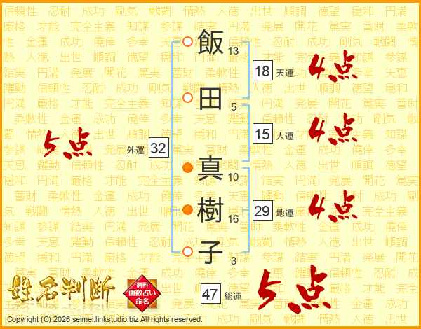 飯田真樹子さんの総運は47画の5点!