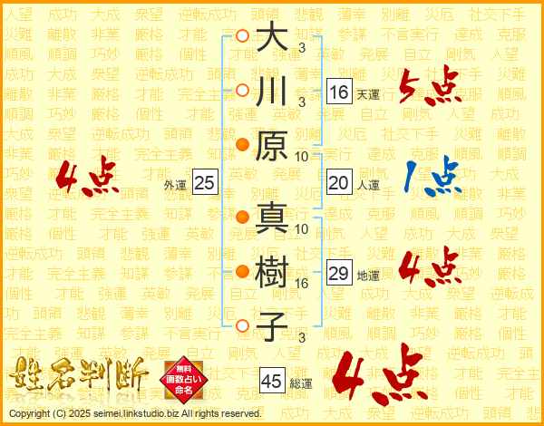 大川原真樹子さんの総運は45画の4点!