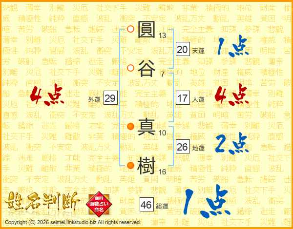 圓谷真樹さんの総運は46画の1点!
