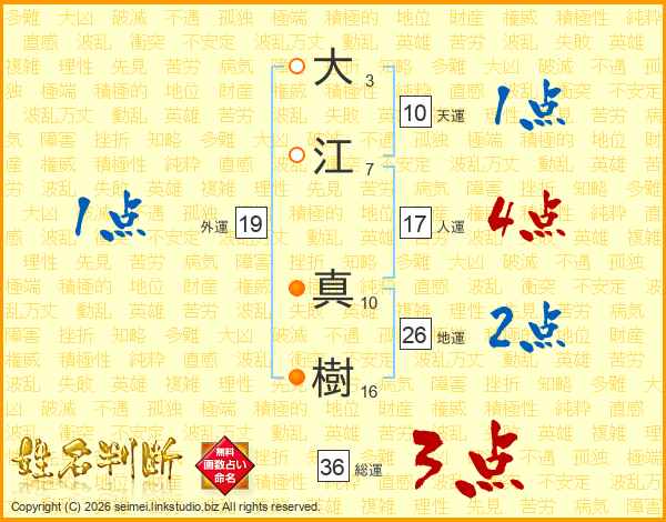 大(3画)江(7画) 真(10画)樹(16画)