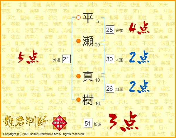 平瀬真樹さんの天運は25画の4点!