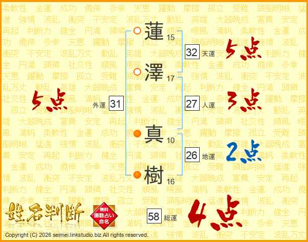蓮澤真樹さんの総運は58画の4点!
