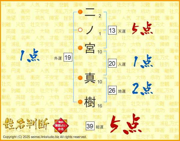 二ノ宮真樹さんの総運は39画の5点!