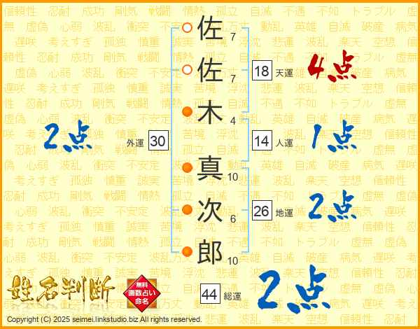 佐佐木真次郎さんの総運は44画の2点!