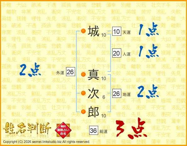 城真次郎さんの地運は26画の2点!