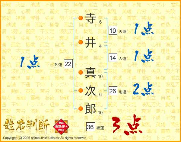 寺井真次郎さんの地運は26画の2点!
