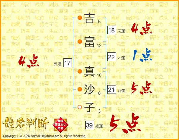 吉富真沙子さんの総運は39画の5点!