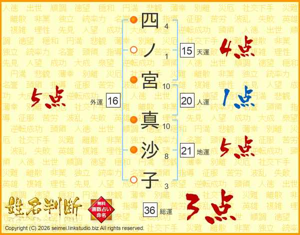 四ノ宮真沙子さんの外運は16画の5点!